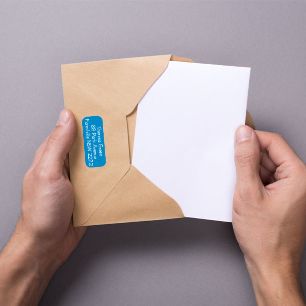 - Nothing difficult here! Remove the label from the backing sheet and stick it on your envelope. Voila!